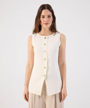 Chaleco Mujer Tejido Sin Mangas Botones Dorados