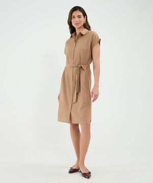 Vestido Unicolor Con Cinturon
